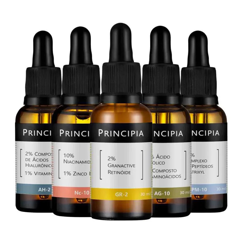 Kit com 5 fórmulas: Granactive Retinóide, Niacinamida + Zinco, Ácido Glicólico + Aminoácidos, Peptídeos Matrixyl e Ácidos Hialurônicos.