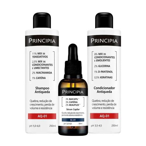 Kit com shampoo, condicionador e sérum antiqueda com alta eficácia na redução da quebra, estimulo do crescimento e aumento da resistência e volume dos cabelos.