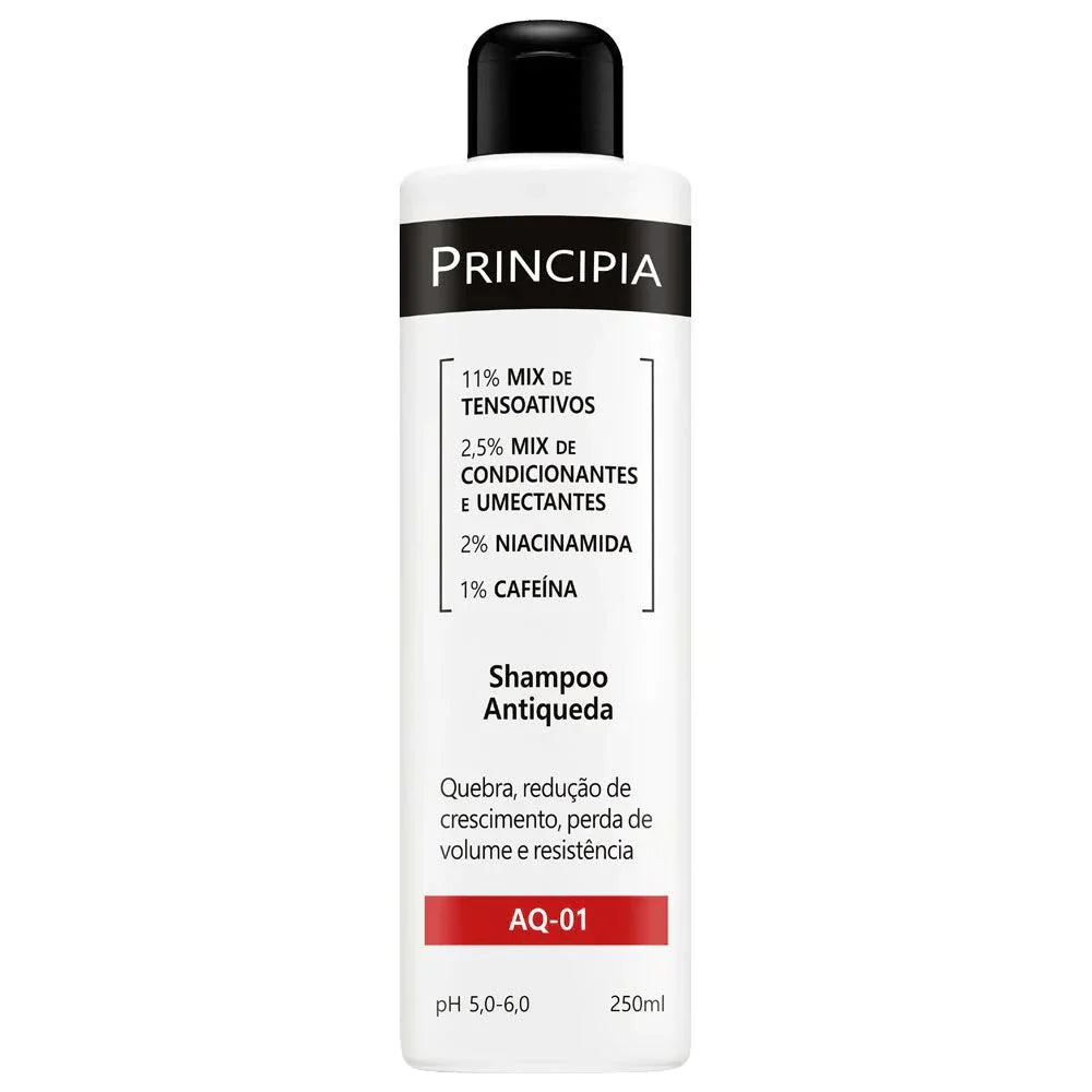 Shampoo antiqueda com 11% de Mix de Tensoativos + 2,5% de Mix de Condicionantes e Umectantes + 2% Niacinamida + 1% Cafeína e alta eficácia na redução da quebra, estimulo do crescimento e aumento da resistência e volume dos cabelos.